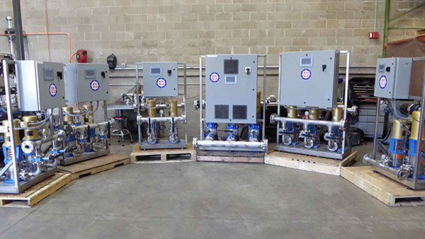 Our booster pump systems are engineered in-house specifically to your capacity and space needs. We offer booster systems ranging from simplex to six pumps. Our systems utilize multiple types of pumps including closed coupled end suction and vertical multistage pumps. Our engineers will look at your size restrictions, water demand, and other factors when designing your system and determining the type of pump used. Every system is made to your specific needs ensuring the most energy efficient high performance available.